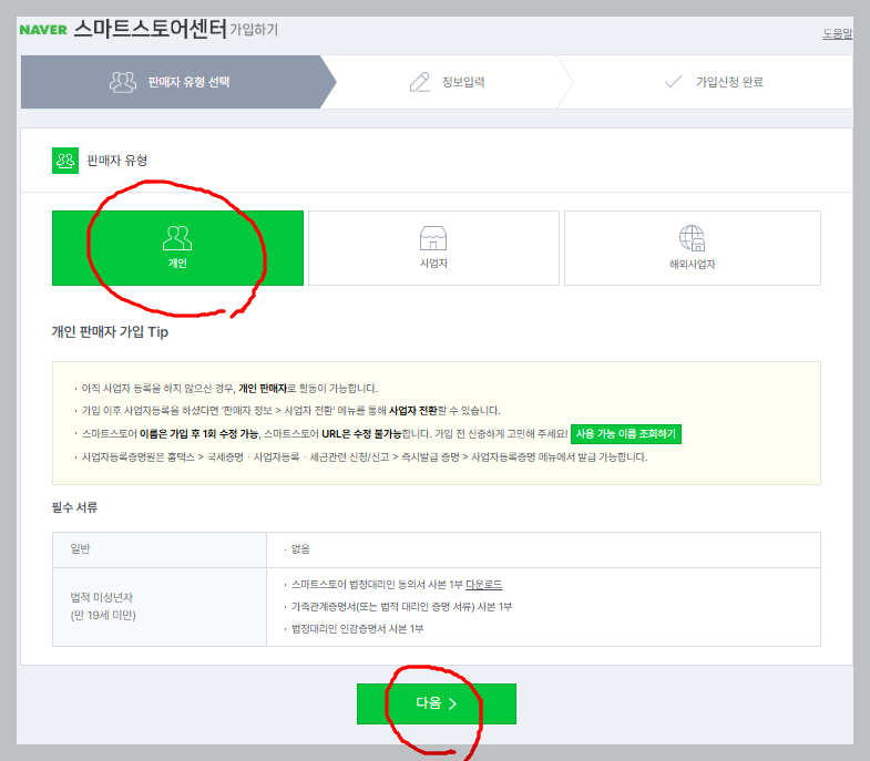 스마트스토어 센터 가입 (개인 및 사업자 중 선택)