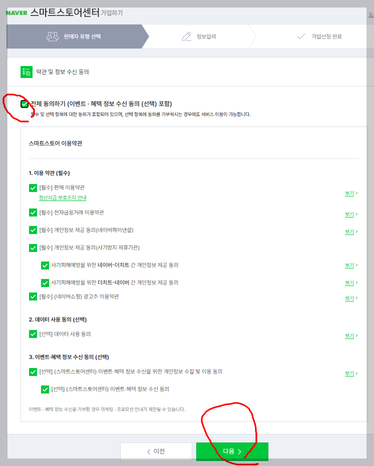 전체동의하기 선택 후 하단 다음 클릭